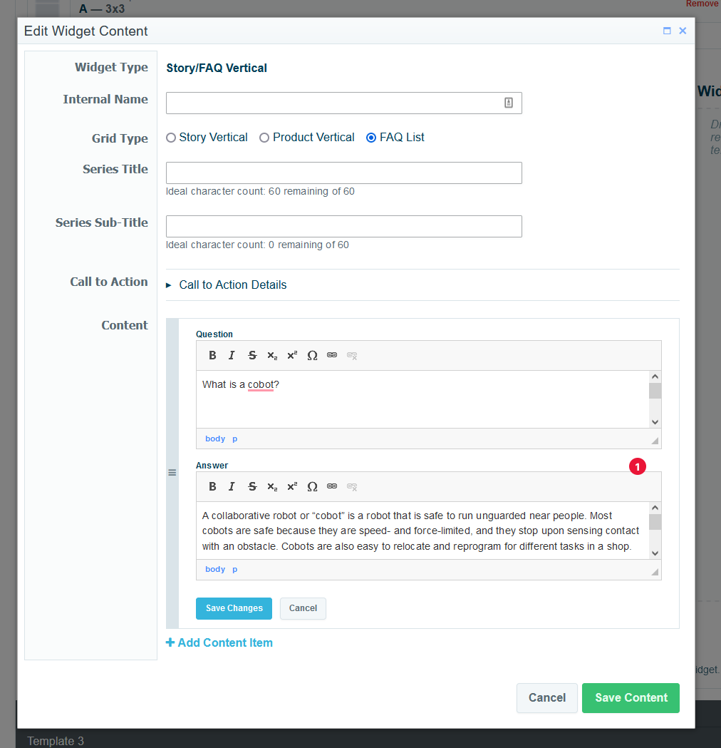 Additionally, the 5 Story Vertical widget has been renamed to Story/FAQ Vertical to better indicate that you can add FAQ items using this widget.