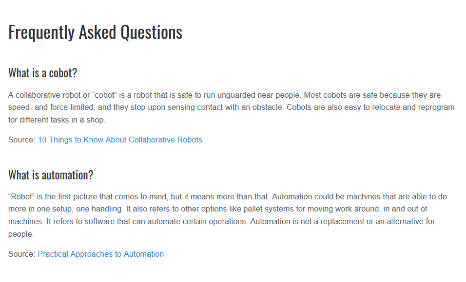 The FAQ List Grid Type is limited to manually defining a list of questions and answers.