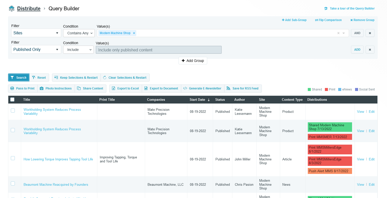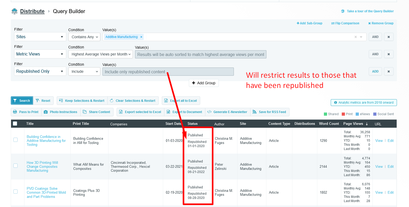 - Republished Only - Allows you to restrict the results to only republished content, or you can flip the condition and exclude any republished.