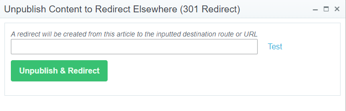 Clicking this option will open a new window that will allow you to insert the URL for which this content should now redirect to (Instead of simply returning a 404 error)