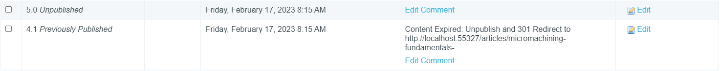 When the Expiry unpublishing occurs, the version history will also be updated to show this.