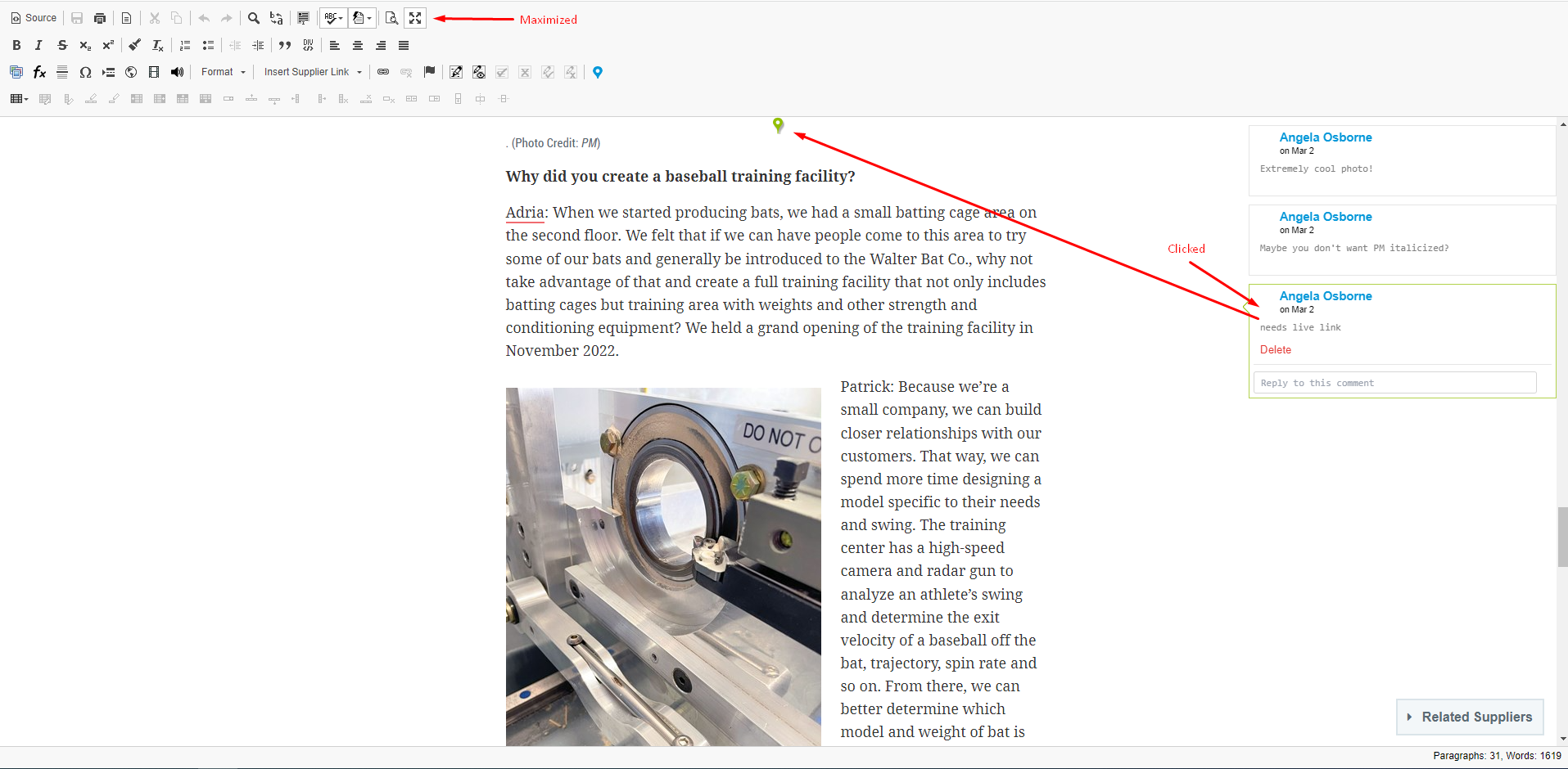 While the body is Maximized, clicking a comment/annotation will now navigate to the comment's position within the body.