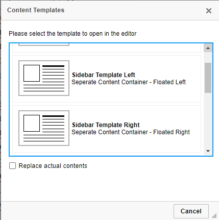 Two new templates were added to the WYSIWYG templates section. These are additional versions of the sidebar template, but will be floated left or right (Similar to Images).