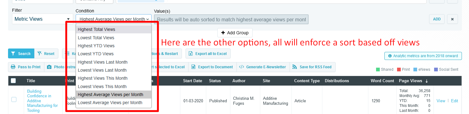 - Metric Views - Allows you to force a sort by a certain view condition, like highest average views per month